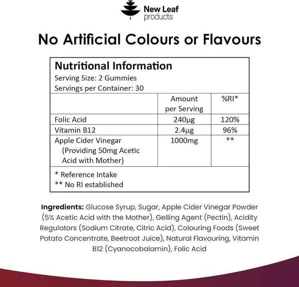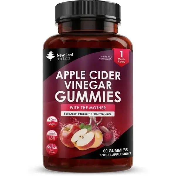 Delight in our vegan apple cider gummies, packed with apple cider vinegar, commonly used for digestion and weight management. Enriched with folic acid & Vitamin B12 and organic beetroot juice, they offer increased energy, reduced fatigue, overall well-being, and a 30-day supply. Enjoy the benefits without the sour taste. Elevate your health journey today!